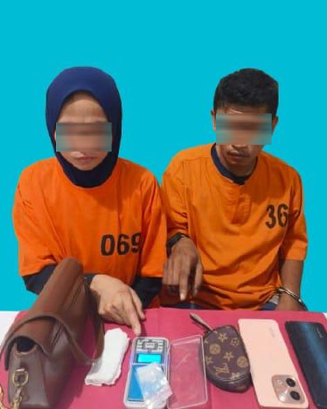 Tim Opsnal Sat Resnarkoba Polres Pelalawan melakukan penyelidikan dan menemukan dua orang mencurigakan. Kedua tersangka ditangkap sedang duduk dipinggir jalan Raja. Kemudian dilakukan interogasi tersangka laki-laki mengaku berinisial Hazly(34) dan perempuan Sadiah (33).