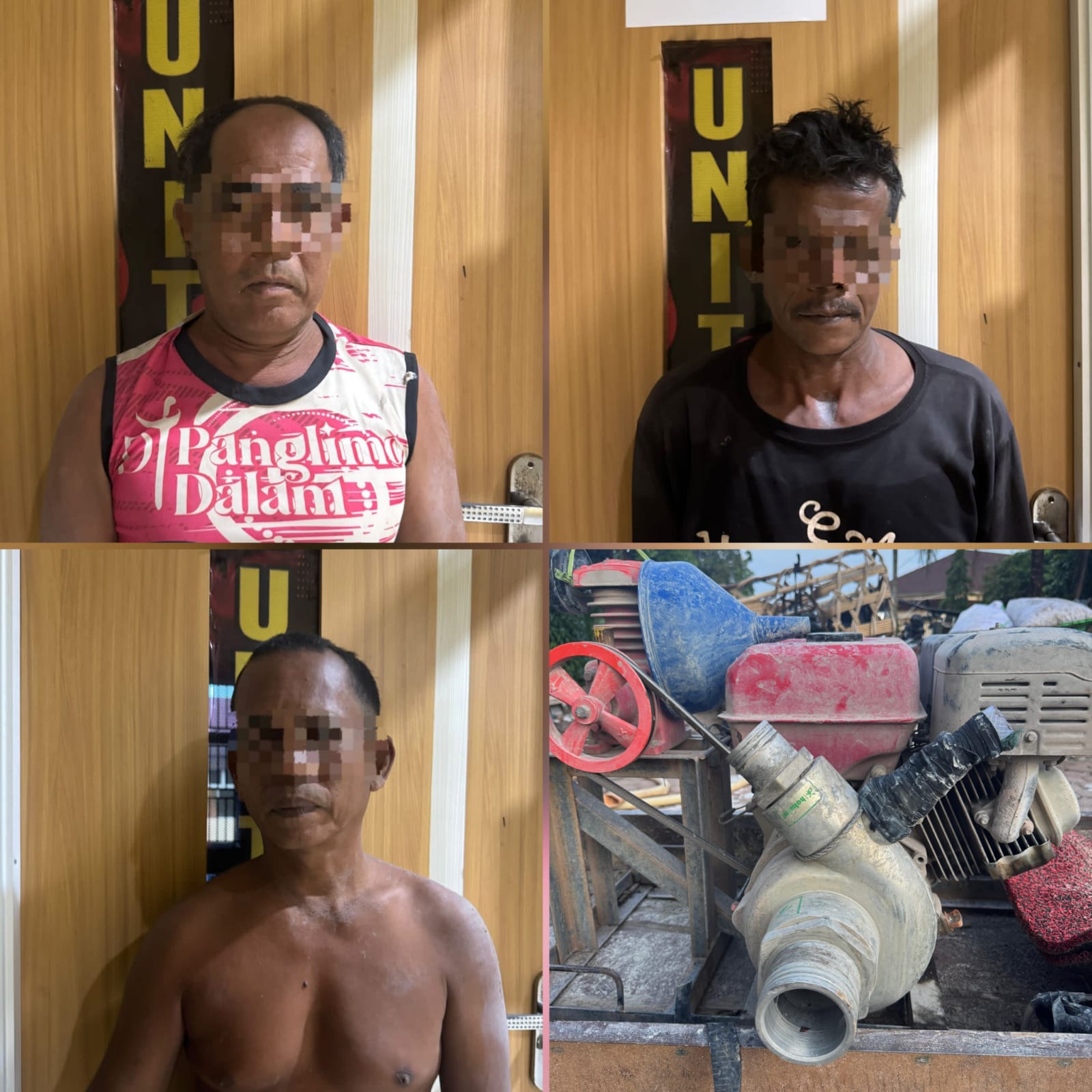 Ketiga pelaku yang diamankan berinisial Y(60), warga Desa Rantau Sialang Kecamatan Kuantan Mudik; RA(49), warga Desa Pisang Berebus Kecamatan Gunung Toar; dan MK(50), warga Desa Koto Kari Kecamatan Kuantan Tengah. Ketiganya ditangkap saat sedang melakukan aktivitas tambang menggunakan peralatan tradisional tanpa memiliki izin usaha pertambangan sebagaimana diatur dalam Pasal 158 Undang-Undang Nomor 3 Tahun 2020 tentang Pertambangan Mineral dan Batubara (Minerba).
