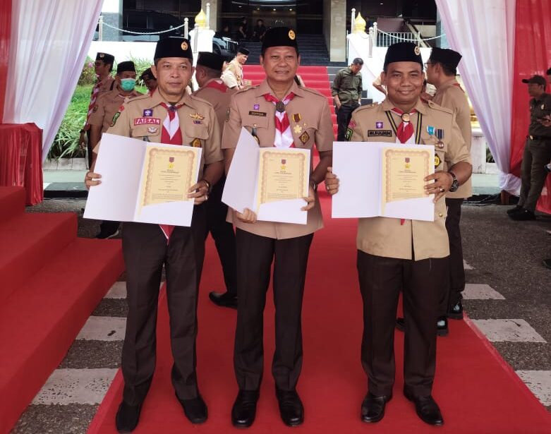 Pelalawan|Jurnalismedia.com-Senin, 18 Agustus 2025, Dalam sebuah momen penuh haru dan kebanggaan, lima kader terbaik Gerakan Pramuka Kabupaten Pelalawan dianugerahi Lencana Karya Bakti, penghargaan bergengsi atas dedikasi, pengorbanan, disiplin, dan keberanian luar biasa dalam penanggulangan bencana nasional dan pengembangan kegiatan sosial kemasyarakatan.