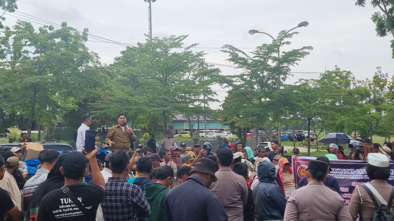 PELALAWAN|Jurnalismedia.com – Ratusan massa yang tergabung dalam Aliansi Mahasiswa dan Masyarakat Pelalawan (AMMP) menggelar aksi unjuk rasa di Kantor Bupati dan DPRD Pelalawan, Kamis (4/12/2025). Aksi ini merupakan bentuk penolakan terhadap rencana relokasi masyarakat dari kawasan Taman Nasional Tesso Nilo (TNTN).