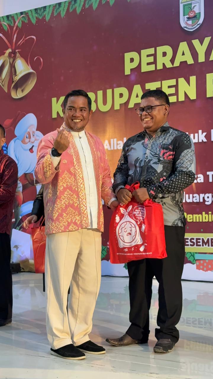 Pelalawan|Jurnalismedia.com-Bupati Pelalawan H. Zukri, S.M., M.M., menghadiri Perayaan Natal Umum Kabupaten Pelalawan Tahun 2025 yang dilaksanakan di Gedung Jeremi, BTN Lama, Pangkalan Kerinci, Kamis (4/12/2025). Kegiatan ini dihadiri oleh Kapolres Pelalawan AKBP John Louis Letedara, S.I.K., sejumlah kepala Organisasi Perangkat Daerah (OPD), para pendeta, serta para jemaat dari berbagai gereja di Kabupaten Pelalawan.