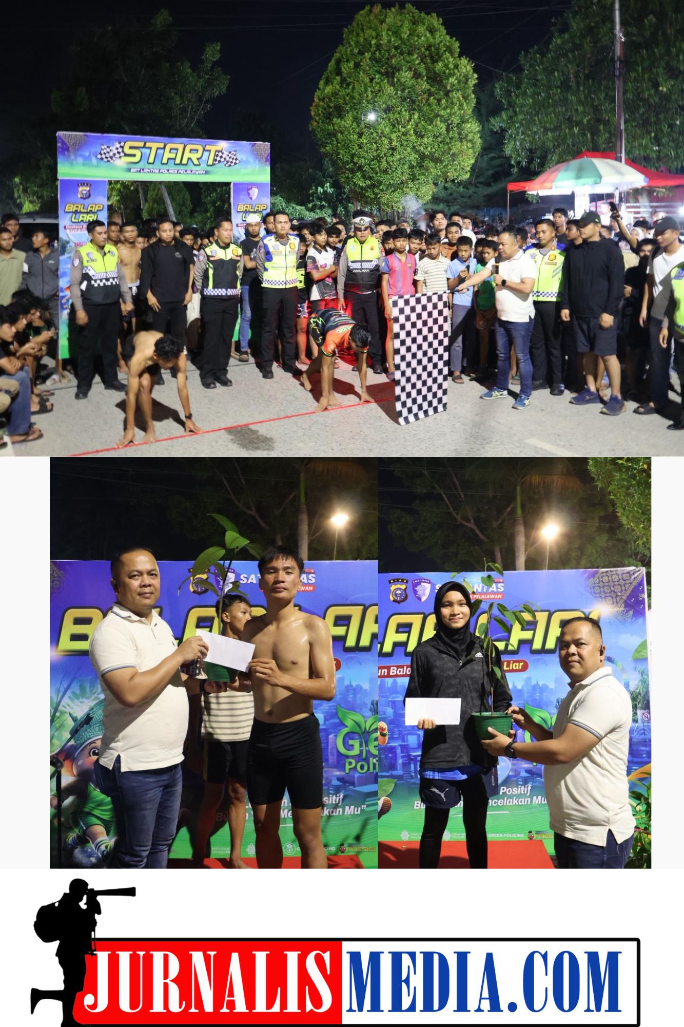 Pangkalan Kerinci, Riau|Jurnalismedia.com– Polres Pelalawan menggelar kegiatan Balap Lari 100 M Green Policing di depan Kantor Bapeda, Kec. Pangkalan Kerinci, Kab. Pelalawan pada Sabtu (28/2/2026) malam. Kegiatan ini dihadiri oleh Wakapolres Pelalawan, KOMPOL ASEP RAHMAT, S.I.K., M.H, Kasat Lantas Polres Pelalawan, AKP TATIT RIZKYAN H, STK, SIK, MH, Kasi Humas Polres Pelalawan AKP Thomas B. Siahaan, S.Sos dan para PJU Polres Pelalawan.