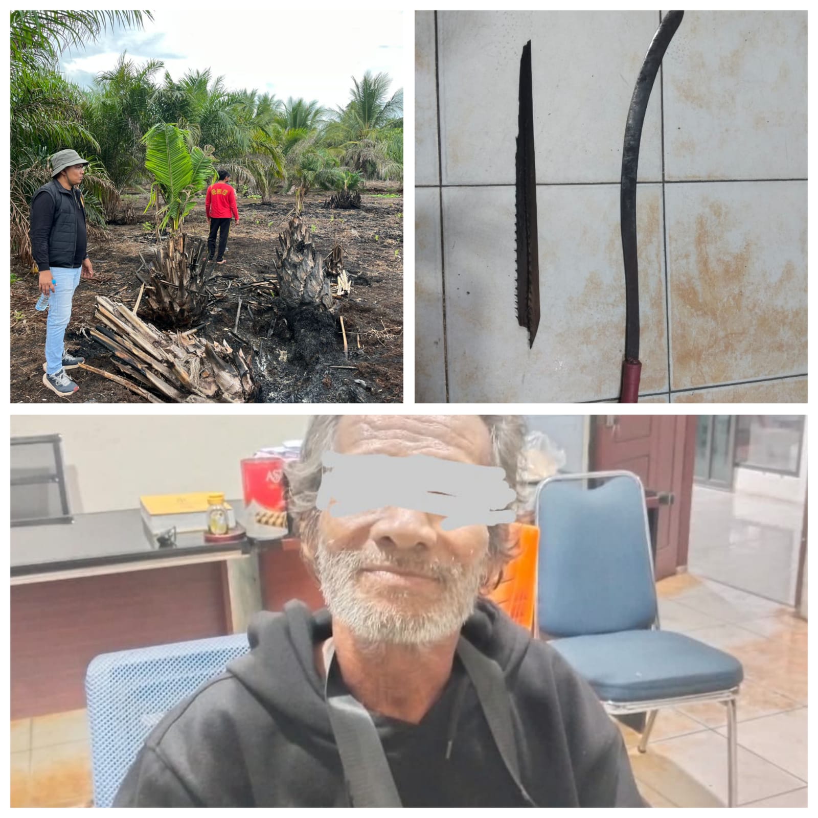 Dari tangan pelaku, petugas turut mengamankan barang bukti berupa satu bilah parang dan satu buah pelepah sawit yang diduga digunakan dalam aktivitas pembakaran lahan.